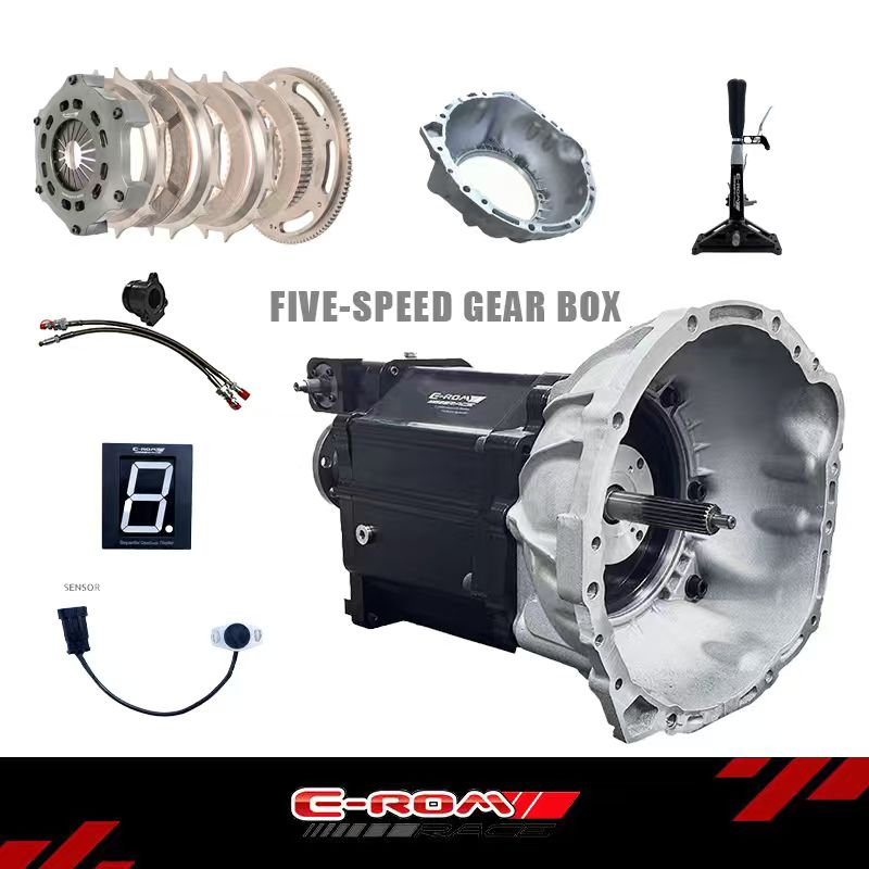 The E-ROM 5-speed sequential transmission is specially designed for professional drifting races and high-performance modified vehicles that require a more compact gear ratio range. It has been improved from the 4-speed version in terms of the strength of gears and shafts as well as gear ratios, balancing acceleration performance and top speed while offering more flexible gear ratio options. Made from aerospace-grade materials and with precise manufacturing processes, it meets the high-intensity requirements of professional races for the transmission system, providing professional drivers with millisecond shift experience and impeccable reliability.